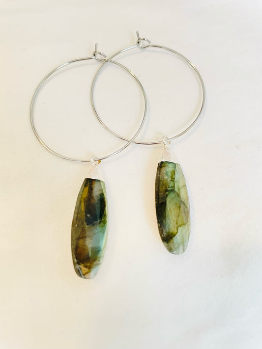 1" Mini Hoop ~ Natural Fire Rainbow Labradorite