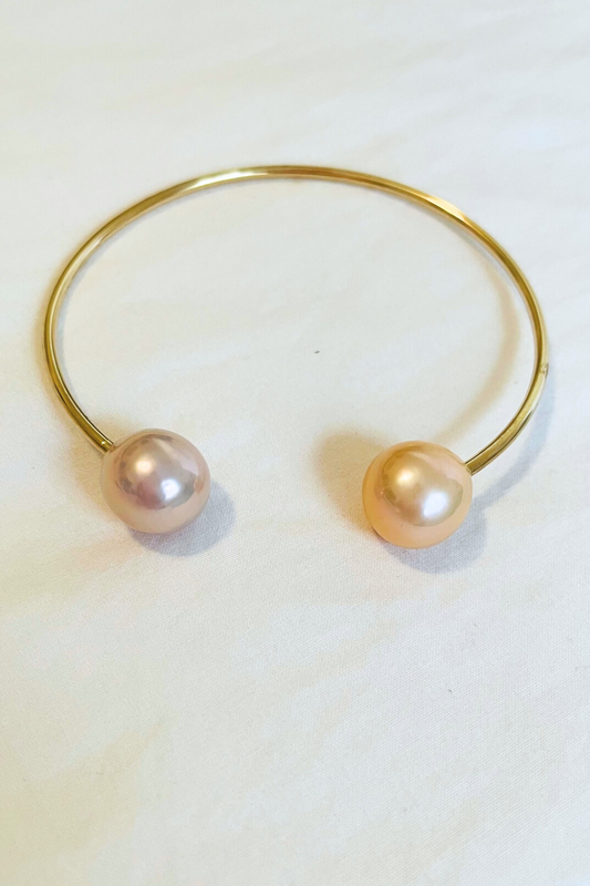 Flameball Baroque Blush Pearl Gold Long Paperclip "o" 34" Necklace