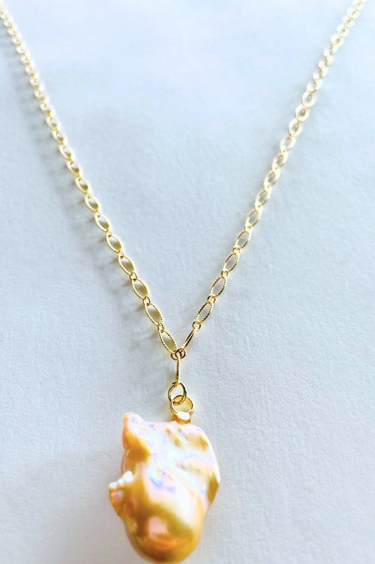 Baroque Flameball Pearl Gold-filled Dainty Rolo Necklace