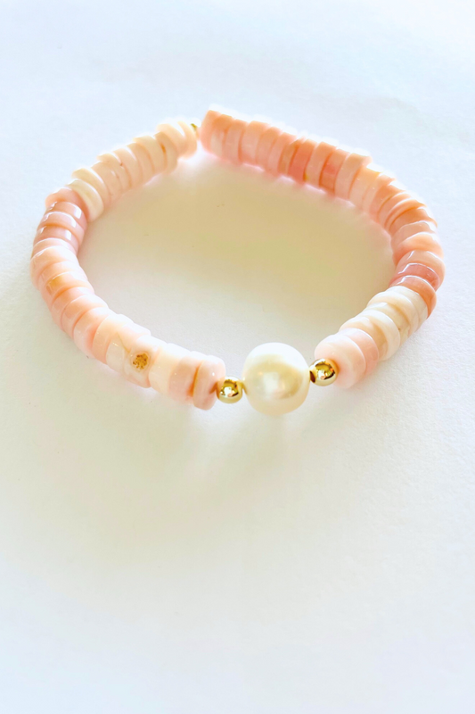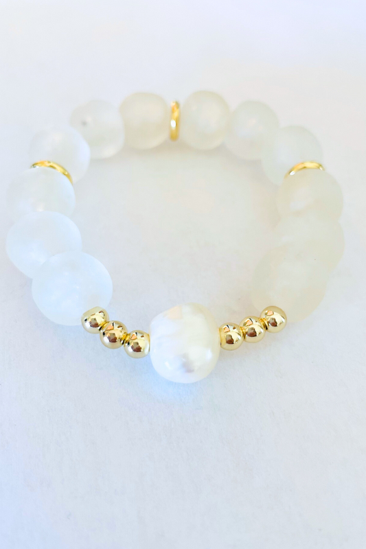 Maui Frosted Beach Glass + Baroque Pearl Bracelet
