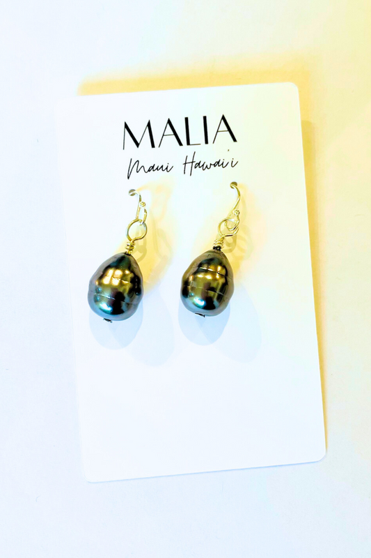 Baroque Black Pearl Dangle Earrings - 12-15MM