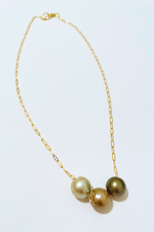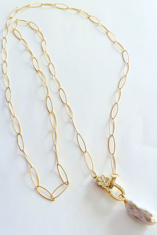 Flameball XL Baroque Pearl Gold Long Marquise 34" Necklace